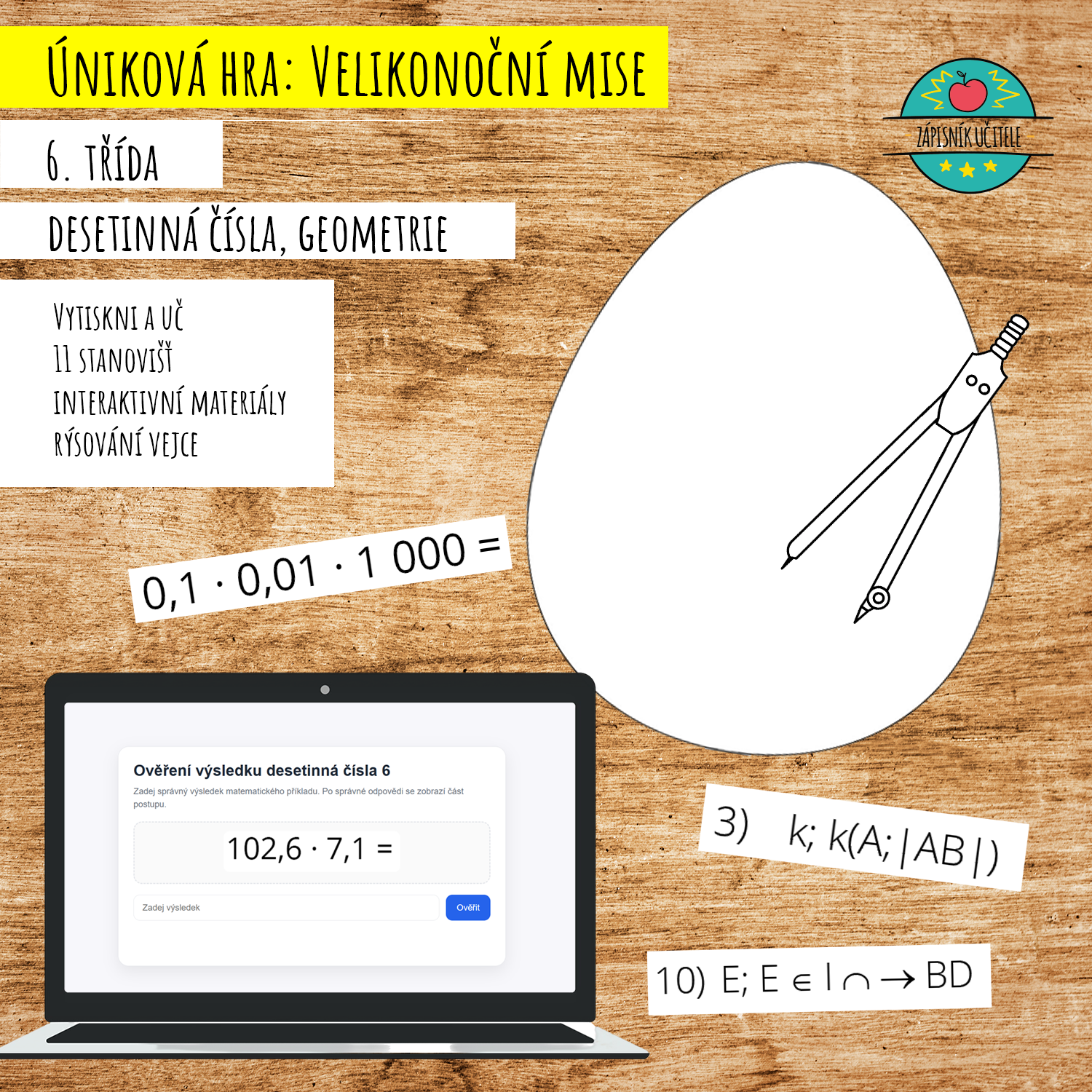 Velikonoční úniková hra – desetinná čísla, geometrie
